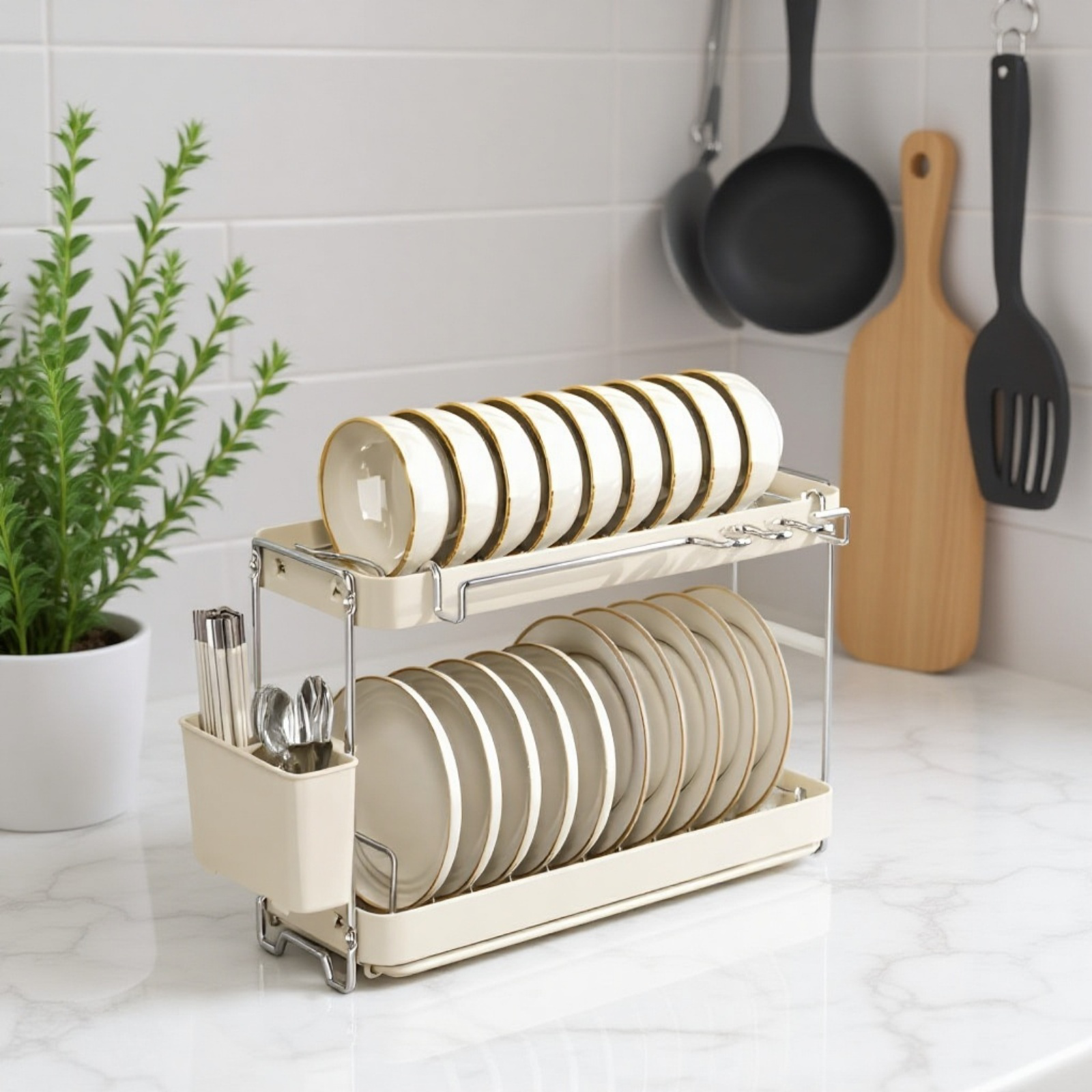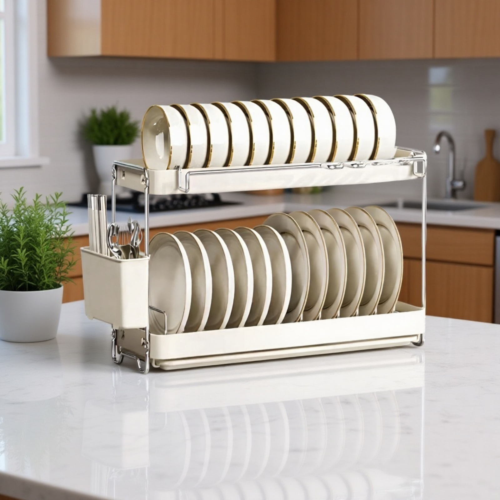 新しいステンレススチール製のボウルとプレートの排水ラックキッチンラックシンクの食器用排水バスケット食器収納ラック