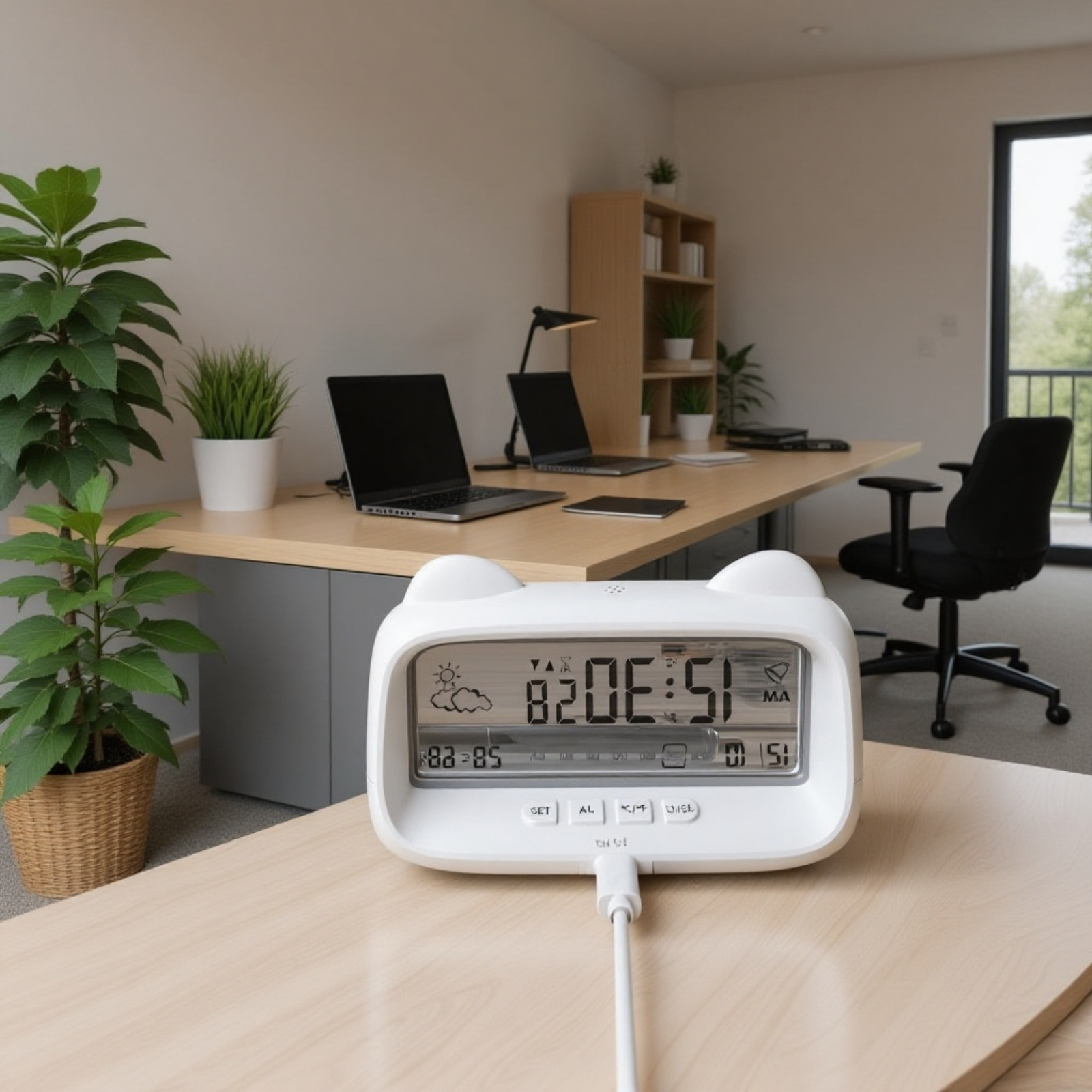 かわいい猫デザイン 子供用電子時計 スマートデジタル表示・卓上・夜光・充電式